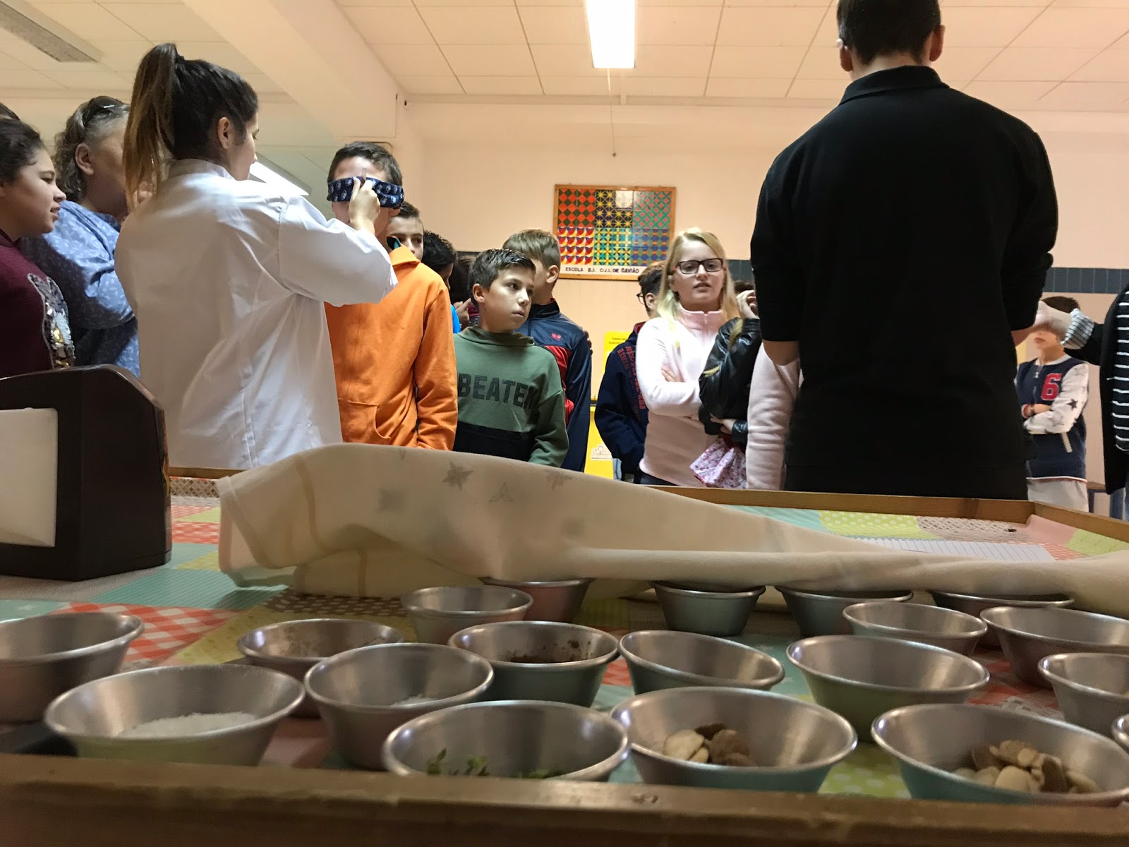 Quarta-feira foi dia de desafiar os sentidos dos nossos alunos do 2º e 3º ciclos com a dinamização da atividade “À descoberta do ingrediente secreto”, que consistiu numa prova cega de vários ingredientes e na descoberta do nome desse mesmo ingrediente. As turmas eram adversárias umas das outras. Foram vencedoras as turmas do 5ºB, 6ºB, 7ºA (masculino), 8ºB e 9ºA.